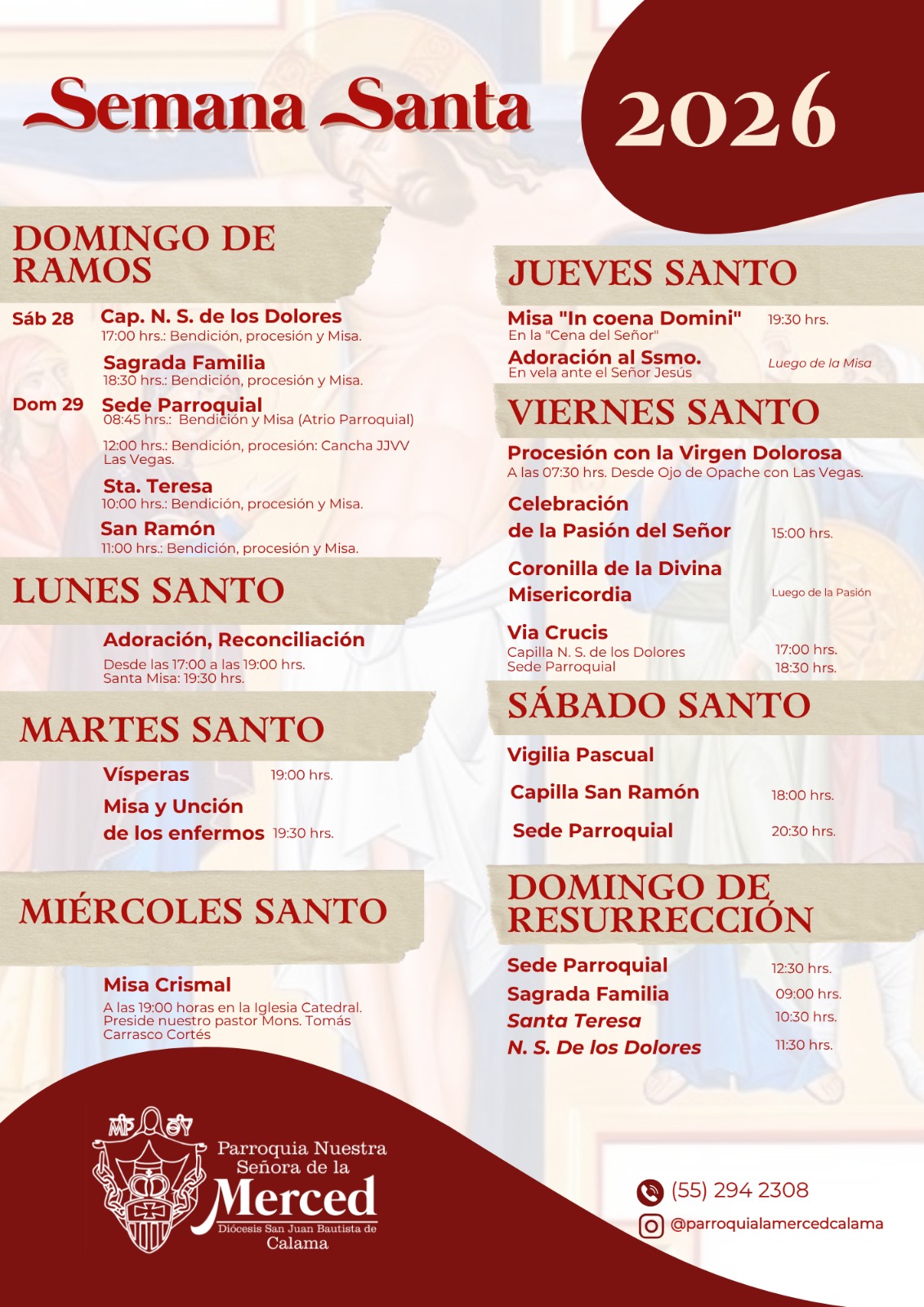 Querida comunidad, se acerca la Semana Santa y queremos que sean parte de cada momento. Es tiempo de hacer una pausa, abrir el corazón y dejar que la misericordia de Dios nos transforme.